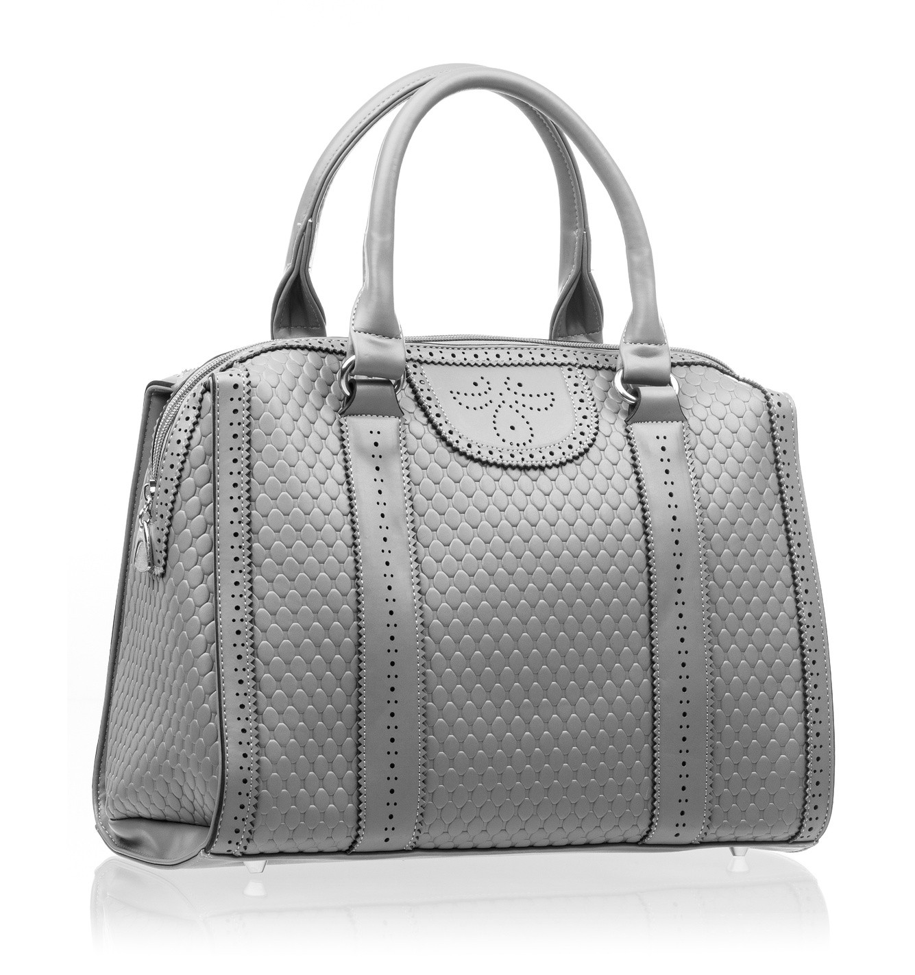 Moderni naisten laukku, jonka kolme erikokoista taskua ovat hyvin tilavia. Laukku on tyylikkäästi koristeltu erilaisilla näyttävillä kuvioilla. Materiaaliltaan laukku on 100% nahkaa.
